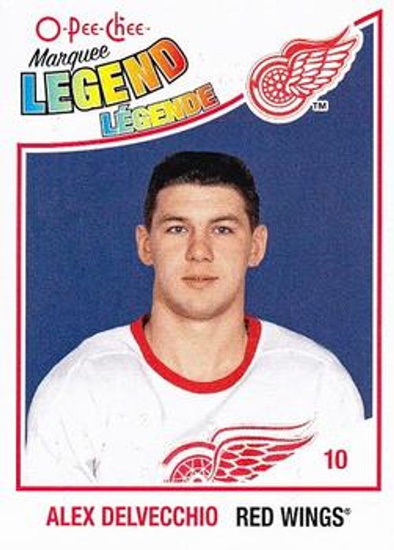The Alex Delvecchio 2010 O-Pee-Chee #579 Base card is 1 of 5 Alex Delvecchio's card variations in the 2010 O-Pee-Chee set being tracked by Sports Card Investor, including Retro, Retro Blank Back, Retro Rainbow, and Retro Black Rainbow /100.