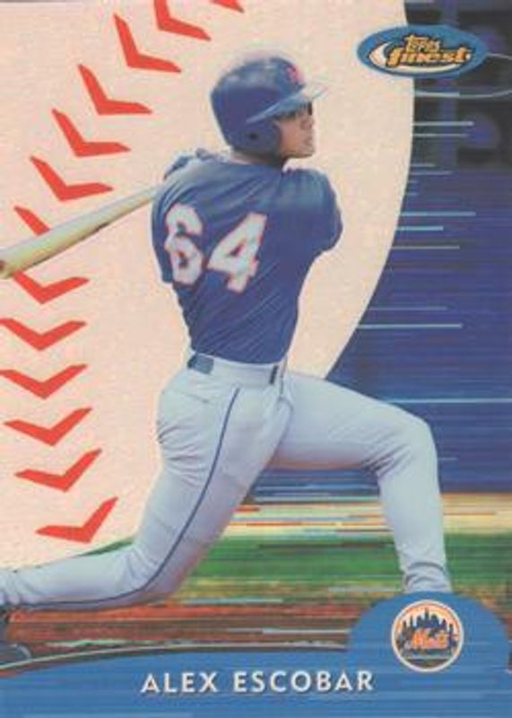 The Alex Escobar 2000 Topps Finest #96 Refractor /1000 card is 1 of 3 Alex Escobar's card variations in the 2000 Topps Finest set being tracked by Sports Card Investor, including Base, and Gold Refractor /100.