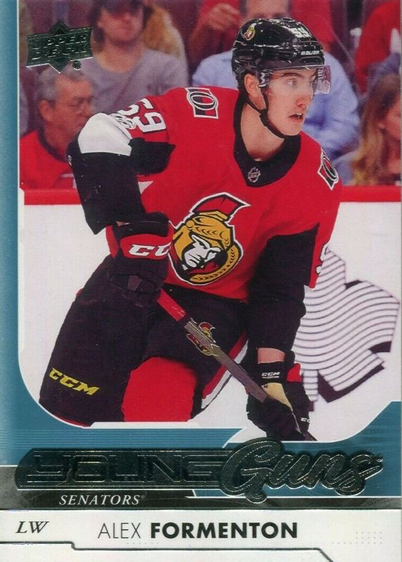 This card is 1 of 29 Alex Formenton's card variations in the 2017 Upper Deck set being tracked by Sports Card Investor, including Young Guns Canvas, Gold Rainbow Foil, Silver Foil, Young Guns - Clear Cut, and Young Guns - Gold Rainbow Foil.