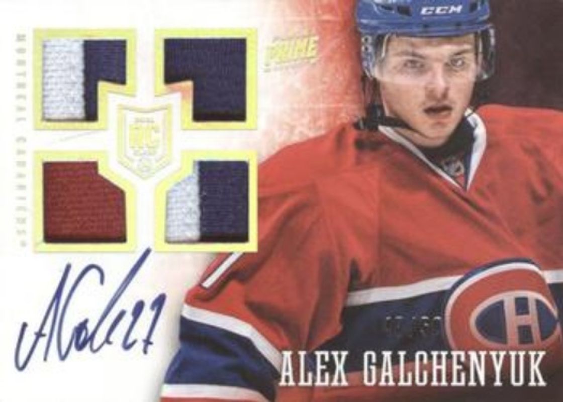 The Alex Galchenyuk 2013 Prime #117 Holo Silver /50 Rookie card is 1 of 34 Alex Galchenyuk's card variations in the 2013 Prime set being tracked by Sports Card Investor, including Base /199, Holo Gold /25, Black /3, Dual Rookie Class '13 Jerseys /100, and Prime Signatures /99.