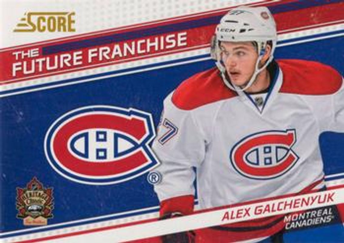 The Alex Galchenyuk 2013 Score #FF-6 The Future Franchise Rookie card is 1 of 10 Alex Galchenyuk's card variations in the 2013 Score set being tracked by Sports Card Investor, including Base, Black, Gold, Red, and Red Back.