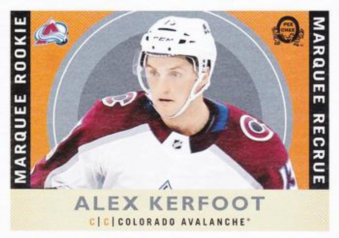 The Alex Kerfoot 2017 Upper Deck #648 2017 O-Pee-Chee Update Retro Rookie card is 1 of 30 Alex Kerfoot's card variations in the 2017 Upper Deck set being tracked by Sports Card Investor, including Young Guns Base, Young Guns Canvas, Gold Rainbow Foil, Silver Foil, and Young Guns - Clear Cut.