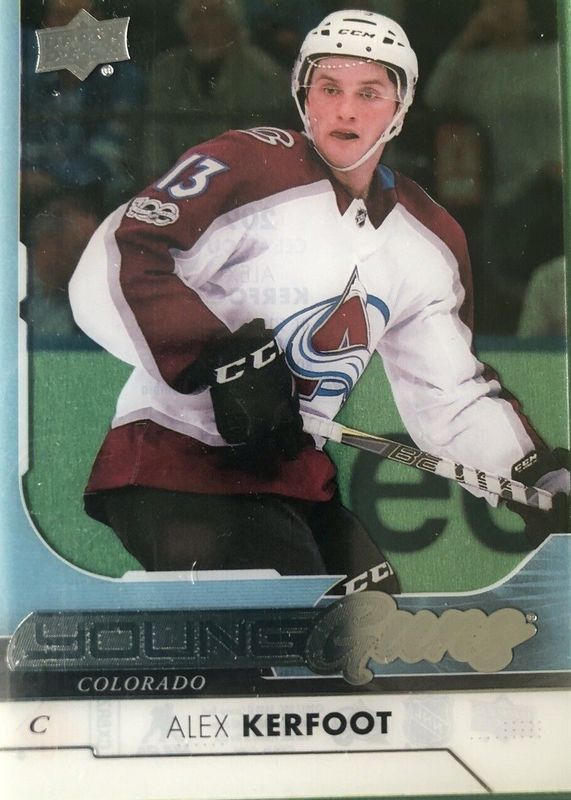 This card is 1 of 9 Alex Kerfoot's card variations in the 2017 Upper Deck set being tracked by Sports Card Investor, including Young Guns Base, Young Guns Canvas, Young Guns - Gold Rainbow Foil, Young Guns - Jumbo, and Young Guns - Silver Foil.