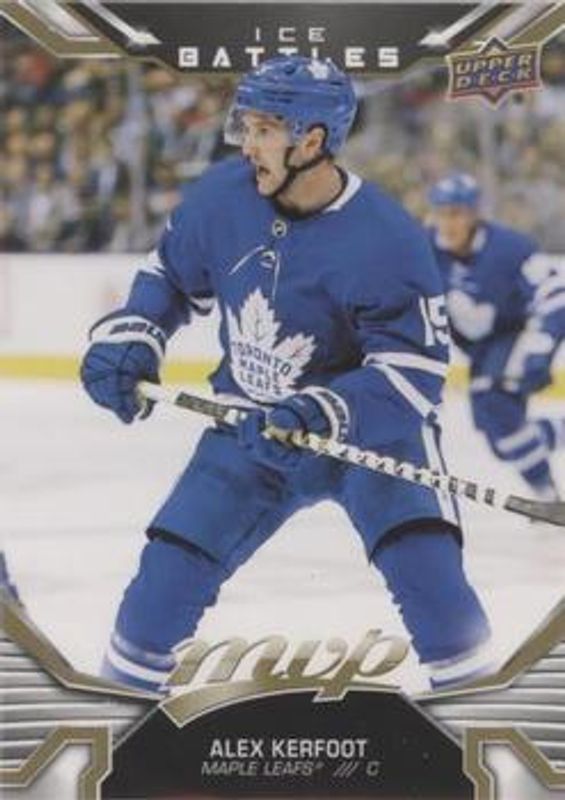 The Alex Kerfoot 2022 Upper Deck MVP #190 Ice Battles - Gold card is 1 of 13 Alex Kerfoot's card variations in the 2022 Upper Deck MVP set being tracked by Sports Card Investor, including Base, Blue Script, Gold Script, Ice Battles, and Silver Script.