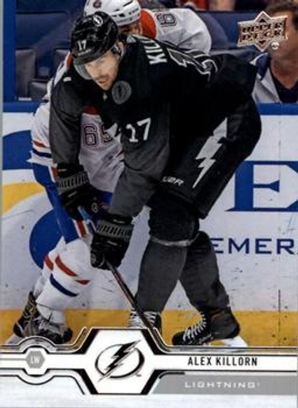 The Alex Killorn 2019 Upper Deck #26 Base card is 1 of 7 Alex Killorn's card variations in the 2019 Upper Deck set being tracked by Sports Card Investor, including Clear Cut, UD Exclusives Clear Cut, UD Exclusives /100, UD High Gloss /10, and Silver Foil.