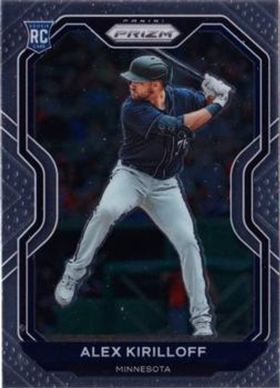 The Alex Kirilloff 2021 Prizm #194 Base Rookie card is 1 of 75 Alex Kirilloff's card variations in the 2021 Prizm set being tracked by Sports Card Investor, including Blue, Blue Velocity, Carolina Blue, Cosmic Haze, and Giraffe.