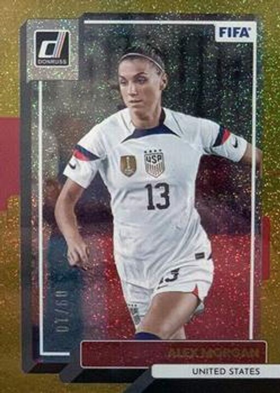 The Alex Morgan 2022 Donruss #124 Gold /10 card is 1 of 33 Alex Morgan's card variations in the 2022 Donruss set being tracked by Sports Card Investor, including Base, Green, Optic, Optic - Green Ice, and Optic - Holo.