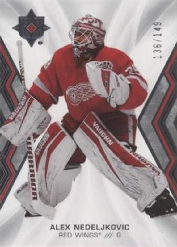 The Alex Nedeljkovic 2021 Upper Deck Ultimate Collection #33 Base /299 card is 1 of 24 Alex Nedeljkovic's card variations in the 2021 Upper Deck Ultimate Collection set being tracked by Sports Card Investor, including Gold /35, Purple /15, Black /5, 2000 Ultimate Signatures Retro, and Autographs.