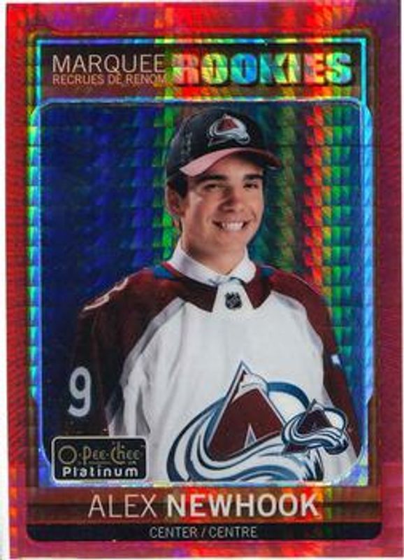 The Alex Newhook 2021 O-Pee-Chee #P-AN OPC Platinum Preview Red Prism /50 Rookie card is 1 of 28 Alex Newhook's card variations in the 2021 O-Pee-Chee set being tracked by Sports Card Investor, including Base, Blue Border, Red Border, Retro, and Retro Blank Back.