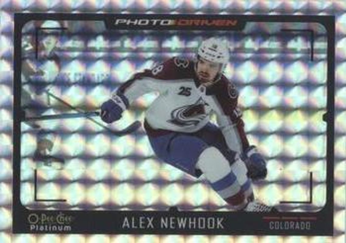 The Alex Newhook 2021 O-Pee-Chee Platinum #PD-14 Photo Driven Mosaic Rookie card is 1 of 48 Alex Newhook's card variations in the 2021 O-Pee-Chee Platinum set being tracked by Sports Card Investor, including Base, Black Shield (Marquee Rookies), Blue Surge, Matte Pink, and Neon Yellow Surge.