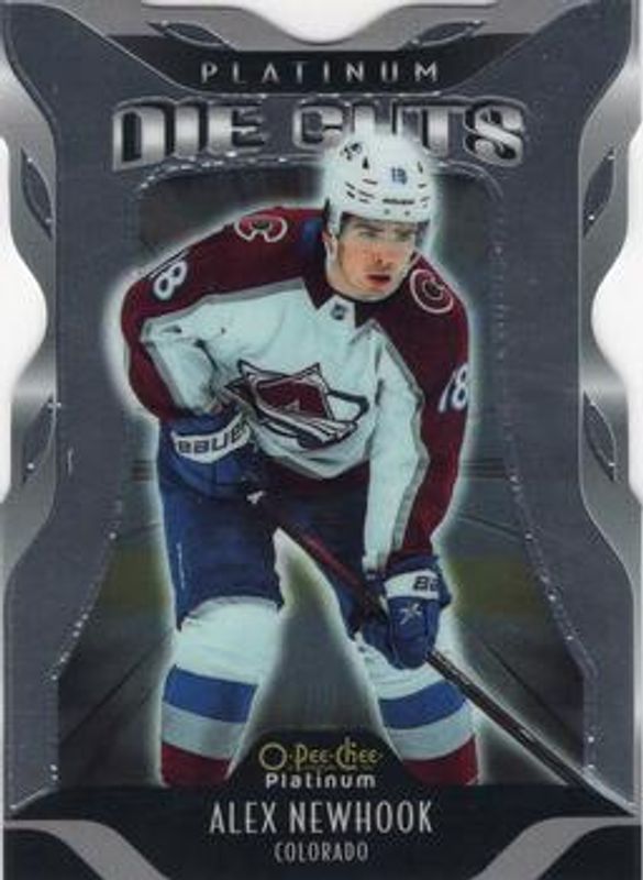 The Alex Newhook 2021 O-Pee-Chee Platinum #DC-25 Platinum Die Cuts Rookie card is 1 of 48 Alex Newhook's card variations in the 2021 O-Pee-Chee Platinum set being tracked by Sports Card Investor, including Base, Black Shield (Marquee Rookies), Blue Surge, Matte Pink, and Neon Yellow Surge.