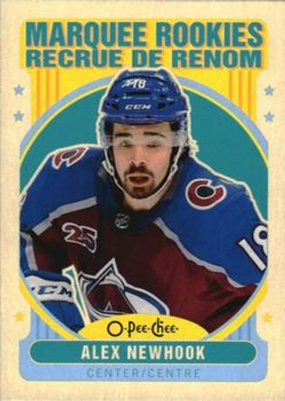 The Alex Newhook 2021 O-Pee-Chee #536 Retro Rookie card is 1 of 28 Alex Newhook's card variations in the 2021 O-Pee-Chee set being tracked by Sports Card Investor, including Base, Blue Border, Red Border, Retro Blank Back, and Retro Black Border /100.