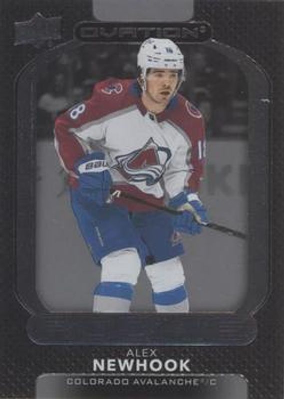 The Alex Newhook 2021 Upper Deck Ovation #113 Silver Foil Rookie card is 1 of 45 Alex Newhook's card variations in the 2021 Upper Deck Ovation set being tracked by Sports Card Investor, including Base, Checkerboard, Gold Circular Wonder, Gold Foil, and Standing Ovation /500.