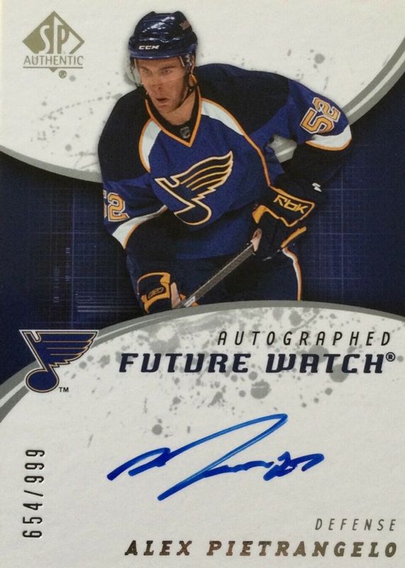 Alex Pietrangelo 2008 SP Authentic #231 Future Watch Auto /999 Rookie RAW Price Guide