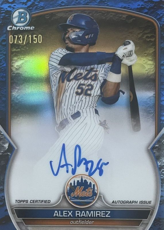 2023 Bowman Alex Ramirez Chrome Blue Lunar Crater Auto /150 CPA-AR, Mets