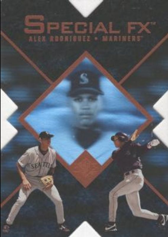 The Alex Rodriguez 1997 SP #10 Special FX card is 1 of 10 Alex Rodriguez's card variations in the 1997 SP set being tracked by Sports Card Investor, including Base, Inside Info, Marquee Matchups, Special FX, and Game Film /500.