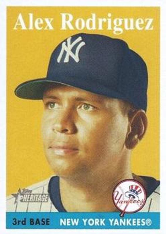 The Alex Rodriguez 2007 Topps Heritage #150 Base card is 1 of 54 Alex Rodriguez's card variations in the 2007 Topps Heritage set being tracked by Sports Card Investor, including #481 Base, #ARHR56 Alex Rodriguez: Road to 500, #ARHR57 Alex Rodriguez: Road to 500, #ARHR58 Alex Rodriguez: Road to 500, and #ARHR59 Alex Rodriguez: Road to 500.