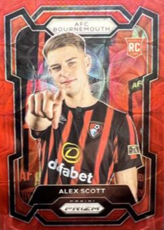 The Alex Scott 2023 Prizm Premier League #238 Choice Red /30 Rookie card in Raw condition has not changed in price in the last 30 days and was last sold for $11.50 .