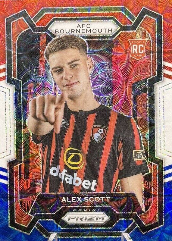 The Alex Scott 2023 Prizm Premier League #238 Choice Red White Blue Rookie card in Raw condition has not changed in price in the last 30 days and was last sold for $6.99 .