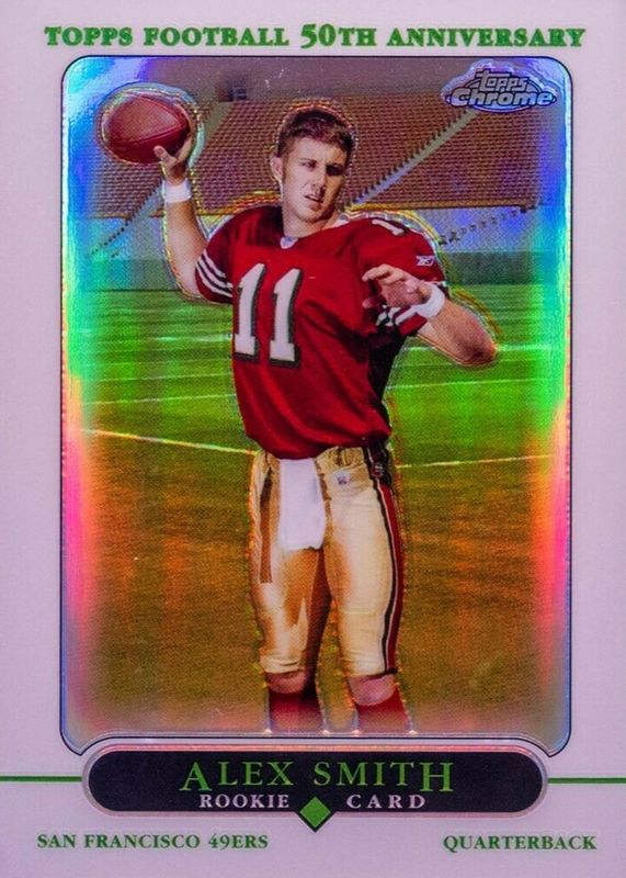 This card is 1 of 4 Alex Smith's card variations in the 2005 Topps Chrome set being tracked by Sports Card Investor, including Base, Gold X-Fractor /399, and Black Refractor /100.