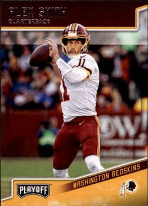 The Alex Smith 2018 Playoff #195 Base card is 1 of 15 Alex Smith's card variations in the 2018 Playoff set being tracked by Sports Card Investor, including Goal Line, Kickoff, Red Zone, 1st Down /99, and 2nd Down /49.