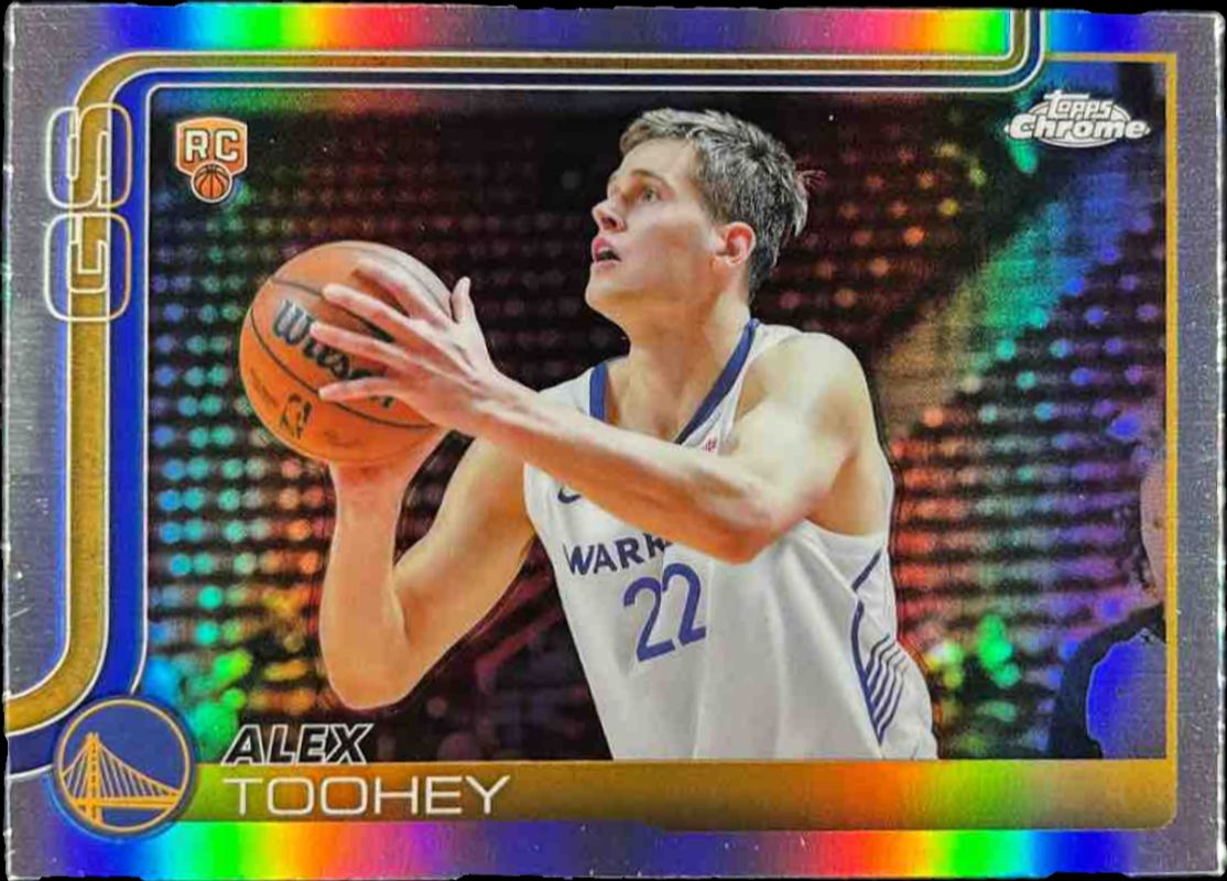 The Alex Toohey 2025 Topps Chrome #298 Refractor Rookie card is 1 of 64 Alex Toohey's card variations in the 2025 Topps Chrome set being tracked by Sports Card Investor, including Base, 1st Day Issue Refractor, Basketball Refractor, Box Set Refractor, and Lightboard Logo Refractor.