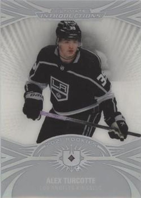 The Alex Turcotte 2021 Upper Deck Ultimate Collection #UI-8 Ultimate Introductions Rookie card is 1 of 38 Alex Turcotte's card variations in the 2021 Upper Deck Ultimate Collection set being tracked by Sports Card Investor, including Base /299, 2000 Ultimate Signatures Retro, 2000 Ultimate Signatures Retro Rookies, Signatures Masterpieces, and Ultimate Emblems - Auto.