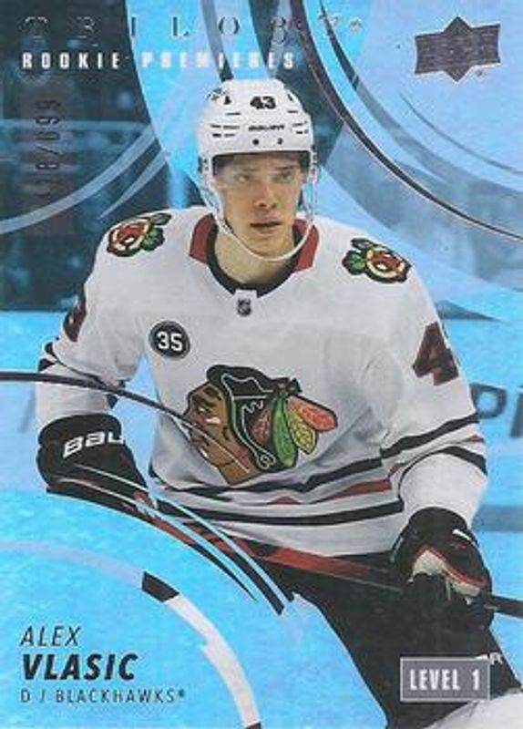 The Alex Vlasic 2022 Upper Deck Trilogy #173 Base /699 Rookie card is 1 of 37 Alex Vlasic's card variations in the 2022 Upper Deck Trilogy set being tracked by Sports Card Investor, including #223 Base /699, #123 Base /699, #123 Black Foil Memorabilia /499, #173 Black Foil Memorabilia /499, and #223 Black Foil Memorabilia /499.