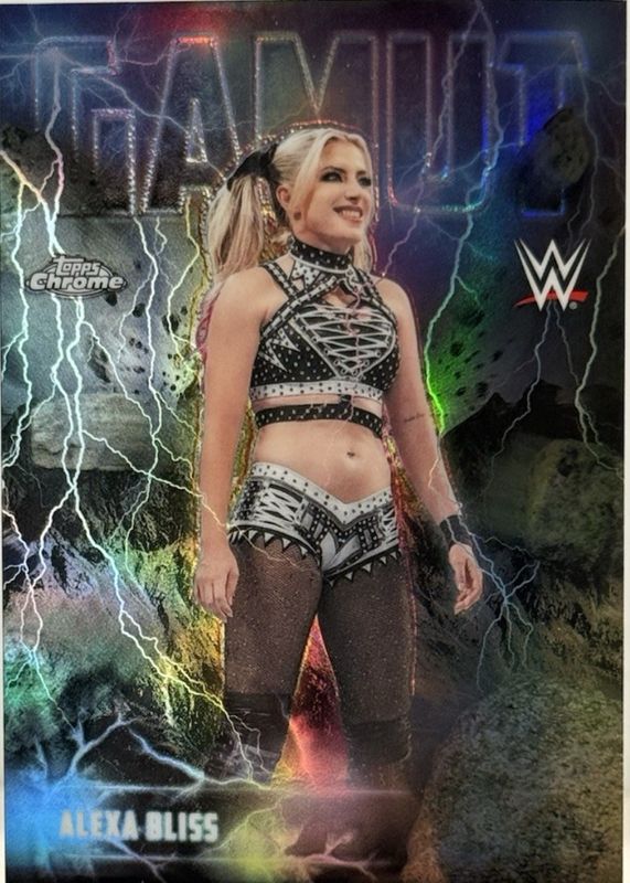 Alexa Bliss' Wrestling cards are available in at least 73 sets. Alexa Bliss' biggest 7-day price movers are 2026 Topps Chrome WWE #GAM-1 Gamut /(SSP), 2022 Prizm WWE #4 Color Blast /(SSP), and 2025 Topps Chrome WWE #CLA-XA Autographs - Gold Refractor /50.