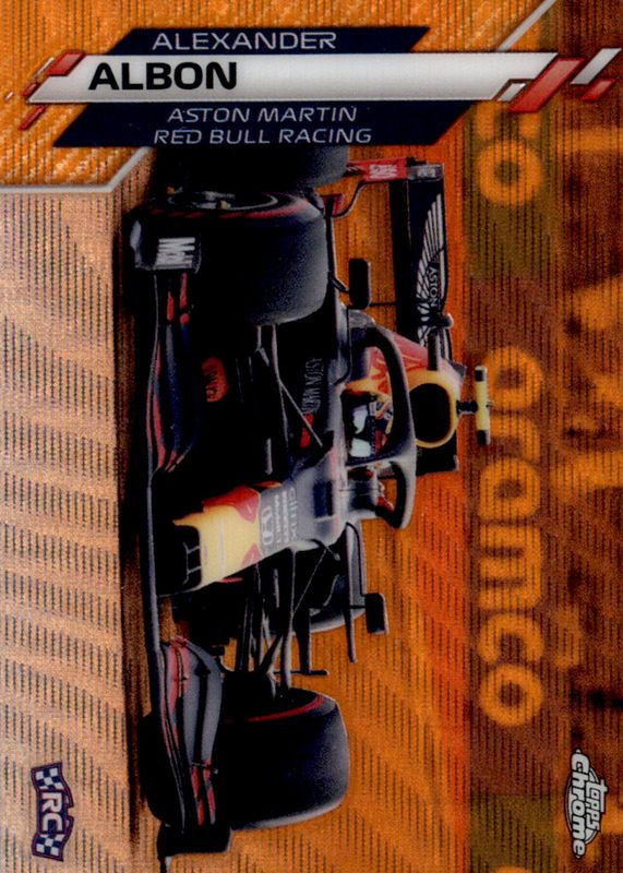 Alexander Albon's Racing cards are available in at least 16 sets. Alexander Albon's biggest 7-day price movers are 2020 Topps Chrome Formula 1 #25 F1 Cars - Orange Wave Refractor /25, 2020 Topps Chrome Formula 1 #5 Refractor, and 2020 Topps Chrome Formula 1 #198 F1 Freshest - Gold Wave Refractor /50.