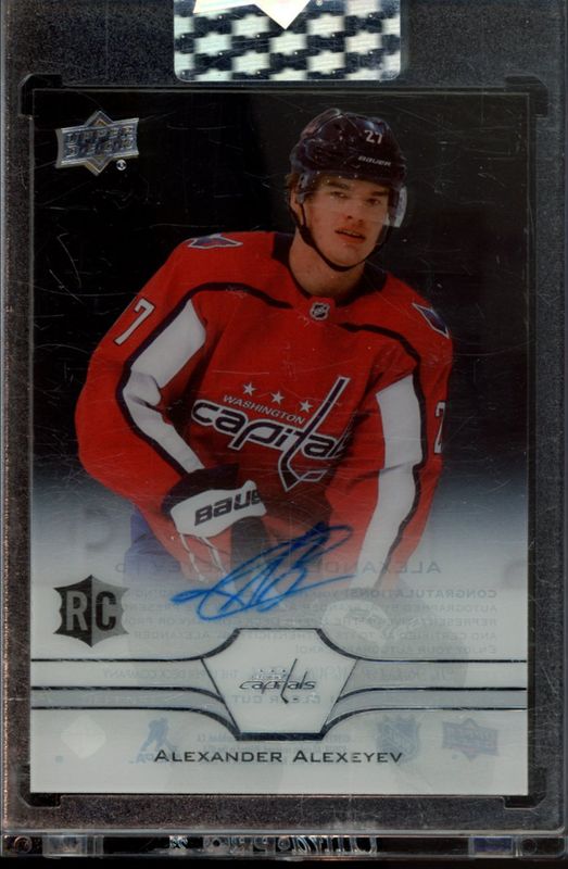 The Alexander Alexeyev 2020 Upper Deck Clear Cut #CC-AA Base Rookie card is 1 of 7 Alexander Alexeyev's card variations in the 2020 Upper Deck Clear Cut set being tracked by Sports Card Investor, including Exclusives /35, High Gloss /10, One of One Aces /1, Champs, and Champs - Green /25.