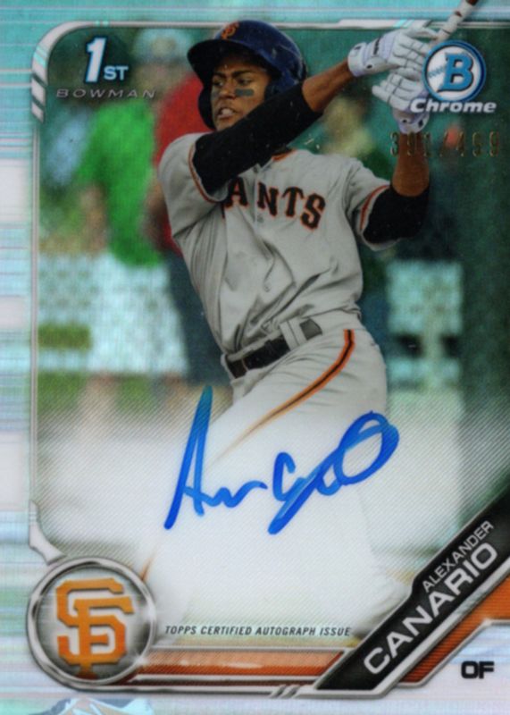 2019 Bowman Chrome Alexander Canario Prospects Auto Refractor #57/499 Giants