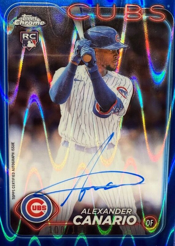 RARE 2024 Topps Chrome Alexander Canario #RA-AC BLUE RAYWAVE Auto RC #’d /150
