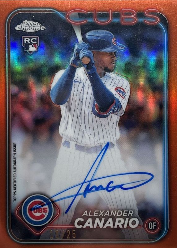 Best Prices Available For Sale of Alexander Canario 2024 Topps Chrome #RA-AC Rookie Autographs - Orange Refractor /25