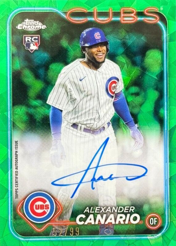 2024 TOPPS CHROME ALEXANDER CANARIO ROOKIE GREEN SAPPHIRE REFRACTOR AUTO /99