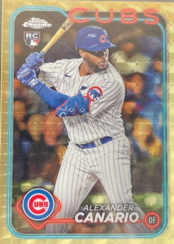 This card is 1 of 60 Alexander Canario's card variations in the 2024 Topps Chrome set being tracked by Sports Card Investor, including Base, Negative Refractor, Pink Refractor, Prism Refractor, and RayWave Refractor.