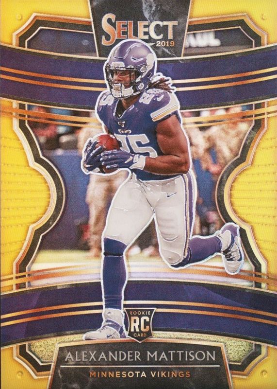 This card is 1 of 35 Alexander Mattison's card variations in the 2019 Select set being tracked by Sports Card Investor, including Concourse, Field Level, Concourse Silver, Field Level Silver, and Concourse Tri-Color /199.