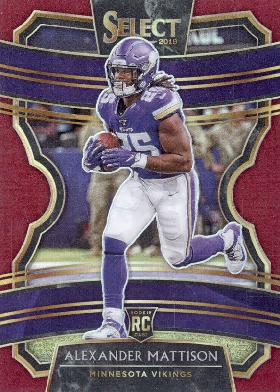 The Alexander Mattison 2019 Select #64 Concourse Maroon /149 Rookie card in Raw condition has not changed in price in the last 30 days and was last sold for $1.00 .