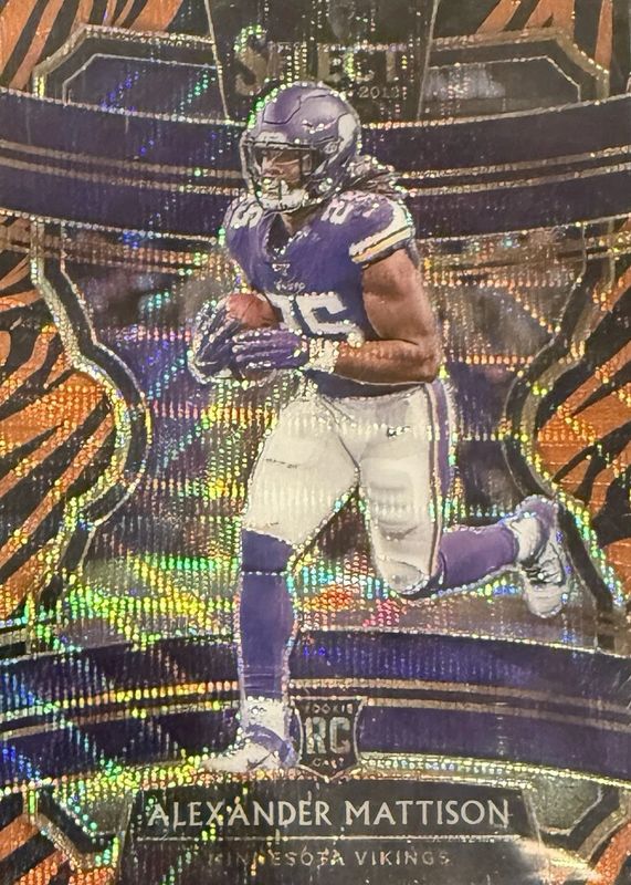 This card is 1 of 35 Alexander Mattison's card variations in the 2019 Select set being tracked by Sports Card Investor, including Concourse, Field Level, Concourse Silver, Field Level Silver, and Concourse Tri-Color /199.