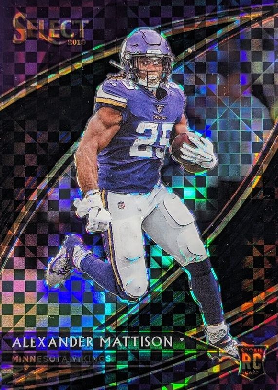 This card is 1 of 35 Alexander Mattison's card variations in the 2019 Select set being tracked by Sports Card Investor, including Concourse, Field Level, Concourse Silver, Field Level Silver, and Concourse Tri-Color /199.