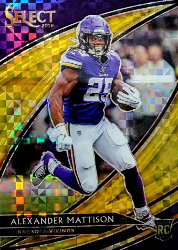 This card is 1 of 35 Alexander Mattison's card variations in the 2019 Select set being tracked by Sports Card Investor, including Concourse, Field Level, Concourse Silver, Field Level Silver, and Concourse Tri-Color /199.