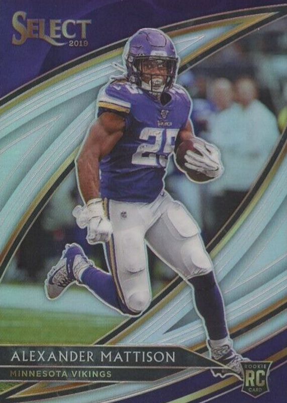 This card is 1 of 35 Alexander Mattison's card variations in the 2019 Select set being tracked by Sports Card Investor, including Concourse, Field Level, Concourse Silver, Concourse Tri-Color /199, and Concourse Blue /175.