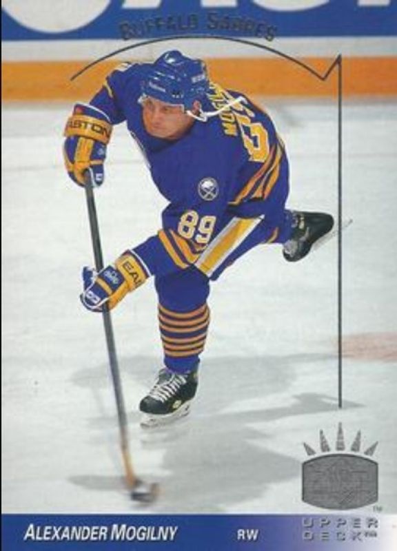 The Alexander Mogilny 1993 Upper Deck #18 SP card is 1 of 7 Alexander Mogilny's card variations in the 1993 Upper Deck set being tracked by Sports Card Investor, including #488 Base, #234 Base, #34 Future Heroes, #HT15 Hat Tricks, and #HB1 NHL's Best.