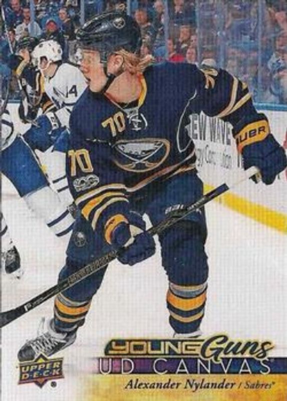 The Alexander Nylander 2017 Upper Deck #C111 Young Guns Canvas Rookie card is 1 of 27 Alexander Nylander's card variations in the 2017 Upper Deck set being tracked by Sports Card Investor, including Young Guns Base, Gold Rainbow Foil, Silver Foil, Young Guns - Clear Cut, and Young Guns - Gold Rainbow Foil.