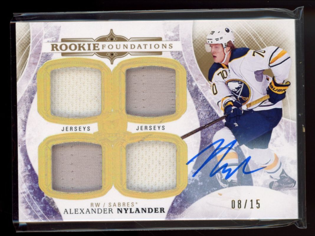 The Alexander Nylander 2018 Upper Deck The Cup #F-AN 2017 Upper Deck The Cup Update I: Cup Foundations Jersey Autographs /15 card is 1 of 62 Alexander Nylander's card variations in the 2018 Upper Deck The Cup set being tracked by Sports Card Investor, including #B-AN 2017 Upper Deck The Cup Update I: Brilliance Autographs, #97 2017 Upper Deck The Cup Update I /99, #SM2-AB 2017 Upper Deck The Cup Update I /99, #AR-AN 2017 Upper Deck The Cup Update I /99, and #136 2017 Upper Deck The Cup Update I /99.