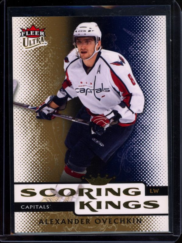 The Alexander Ovechkin 2009 Fleer Ultra #SK1 Scoring Kings card is 1 of 11 Alexander Ovechkin's card variations in the 2009 Fleer Ultra set being tracked by Sports Card Investor, including Gold Medallion, Ice Medallion /25, 2009 Fleer Ultra, Crowning Achievements, and EX Hockey.