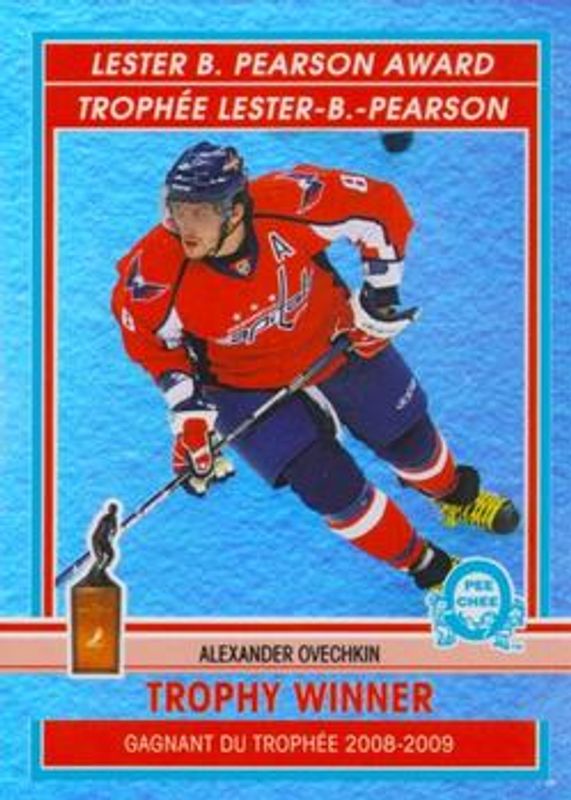The Alexander Ovechkin 2009 O-Pee-Chee #TW3 Trophy Winners card is 1 of 16 Alexander Ovechkin's card variations in the 2009 O-Pee-Chee set being tracked by Sports Card Investor, including Base, Rainbow, Retro, Retro Blank Back, and Retro Rainbow /100.