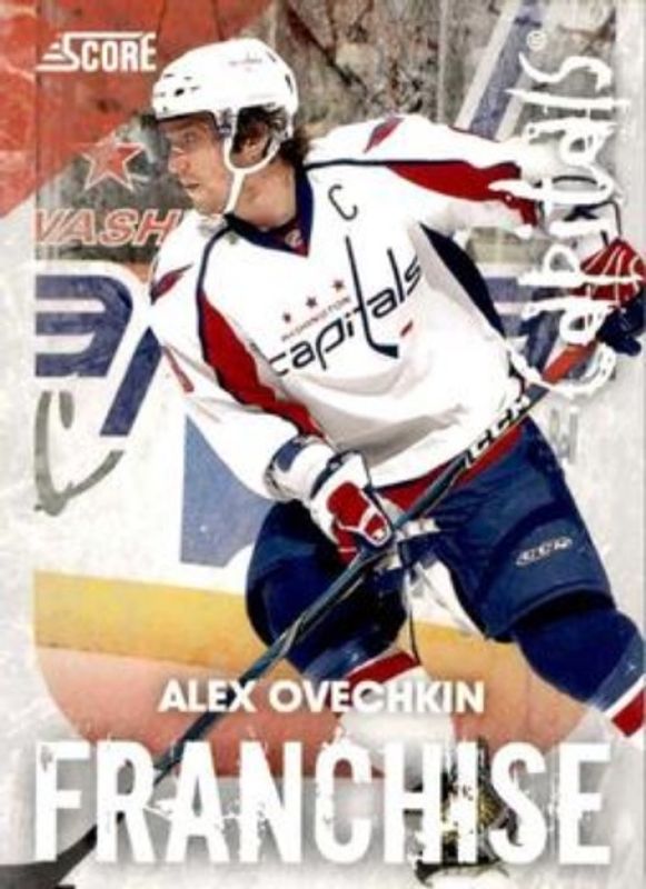 The Alexander Ovechkin 2010 Score #30 Franchise card is 1 of 13 Alexander Ovechkin's card variations in the 2010 Score set being tracked by Sports Card Investor, including #20 Base, #471 Base, #471 20th Anniversary, #20 20th Anniversary, and #471 French Back.