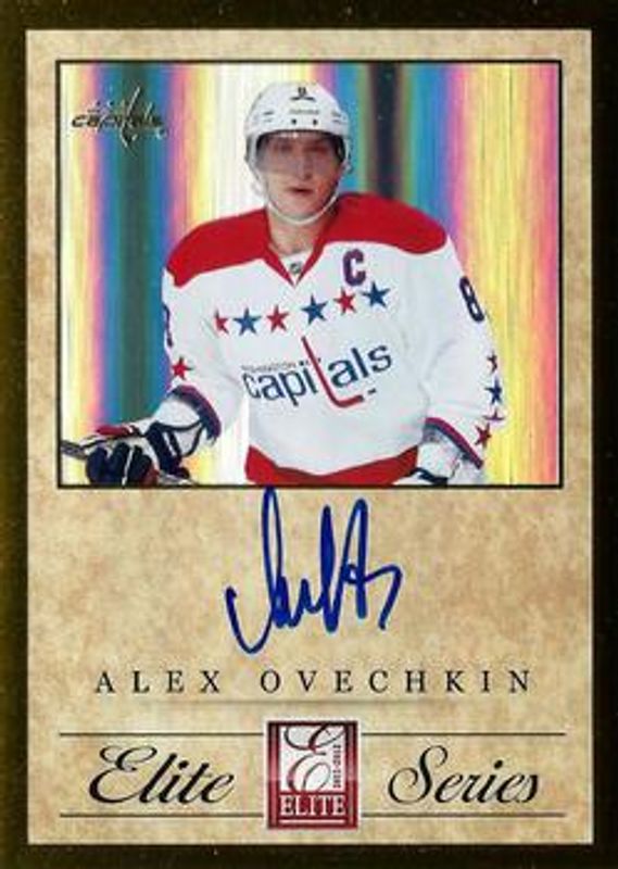 The Alexander Ovechkin 2011 Elite #7 Elite Series Autographs /50 card is 1 of 19 Alexander Ovechkin's card variations in the 2011 Elite set being tracked by Sports Card Investor, including #60 Base /999, #60 Aspirations /99, #60 Gold Status die-cut /10, #2 Elite Series Alex Ovechkin, and #3 Elite Series Alex Ovechkin.