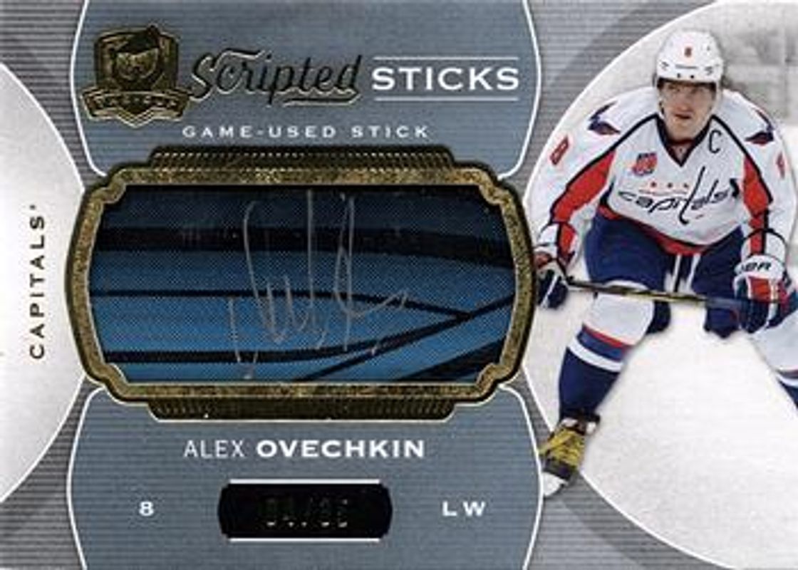 The Alexander Ovechkin 2014 Upper Deck The Cup #SS-AO Scripted Sticks /35 card is 1 of 27 Alexander Ovechkin's card variations in the 2014 Upper Deck The Cup set being tracked by Sports Card Investor, including Base /249, Artist Proof Foundation Patch, Gold Spectrum Autographs /25, Gold /10, and Gold Foil /10.